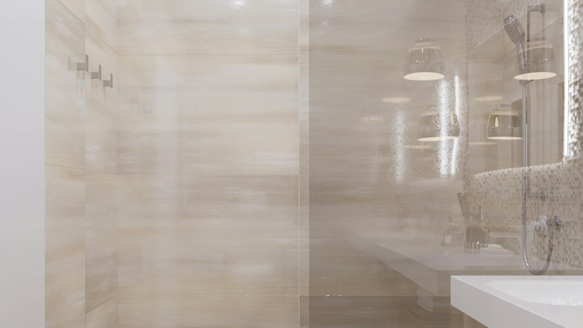 Благодаря эксклюзивному способу нанесения краски, рисунок каждой плитки является уникальным, а в тандеме со стеклянной мозаикой Peronda санузел выглядит превосходно.